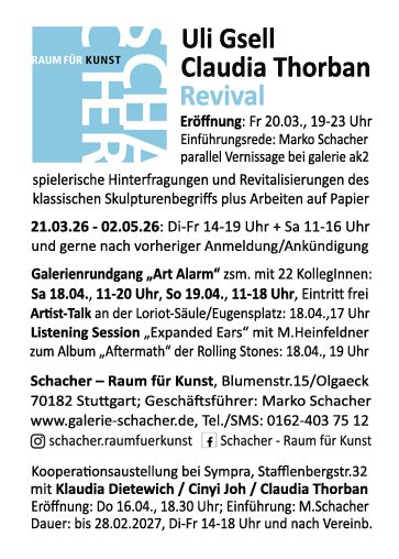 zwischen der Stuttgarter Galerie „Schacher – Raum für Kunst“ und dem Kulturkreis Sulzfeld.